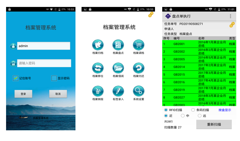 Ø 采用wifi技术与RFID手持终端数据实时同步,实现对档案的位置变更、查找等功能;