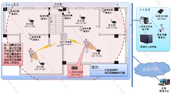 鼎创恒达养老院人员定位管理系统由人员定位标签、定位器、桌面发卡器、定位阅读器、人员定位管理系统软件、图像采集摄像机等部分组成。