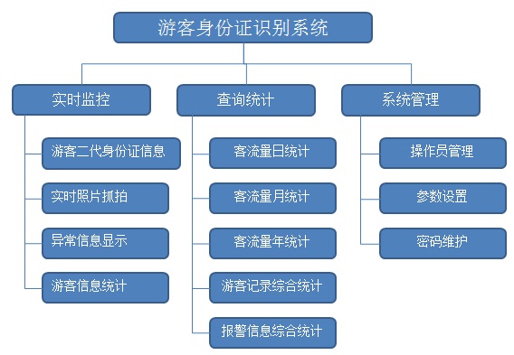 游客身份识别智能管理系统由游客身份识别管理系统和游客身份识别手持移动终端管理系统两部分组成。